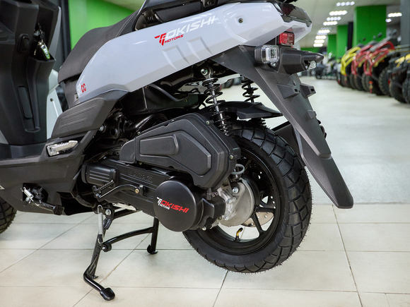 Познакомьтесь с эволюцией легенды! Третье поколение культового турэндуро скутера сочетает в себе все лучшие черты предшественников — мощный 170-кубовый двигатель, не требующий прав категории «А», и готовность к любым дорогам — с совершенно новым агрессивным дизайном. X-образная фара, белоснежный окрас и фирменный стиль Tokishi выделят вас из толпы и в городе, и на бездорожье.