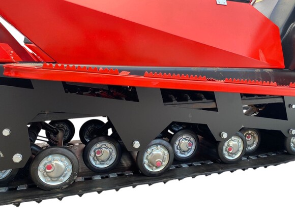 Флагманская новинка зимы 2023 «Бурлак Беркут CS» на склизовой подвеске.Ключевые особенности «Бурлак Беркут CS»:стильный дизайн,горизонтальное подмоторное основание,обновленный узел натяжки цепи, исключающий ее проскальзывание,электропроводка в гофротрубе, блок предохранителя,усовершенствованный конструктив передней подвески,металлическая защита рулевых тяг.В комплектацию входят:двигатель 20, 24 или 27 л.с. с передним расположением,гусеница LONG шириной 500 мм,склизовая подвеска,вариатор "Сафари",электричский запуск,гидравлический тормоз,реверс,2 металлические опорно-поворотные лыжи,спидометр, тахометр,2 основные фары, стоп-сигнал,прикуриватель,зеркала заднего вида.