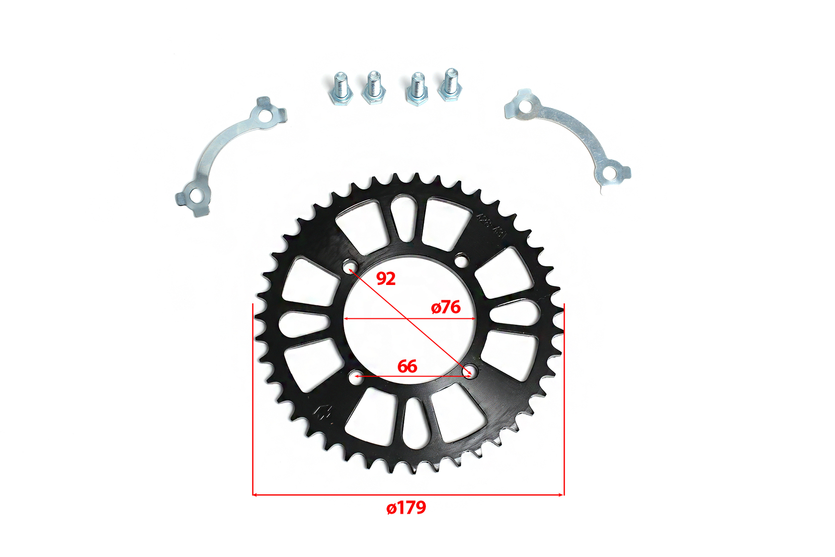 Задняя ведомая звезда для питбайков с 37 зубьями, предназначенная для цепи типа 420. Изготовлена из прочной стали с закаленными зубьями для повышенной износостойкости. Центральное отверстие 76 мм, крепление по схеме 4×92 мм. Совместима с питбайками 125-190 см³.